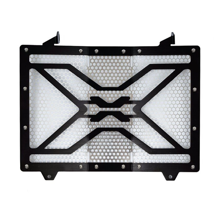Chráni chladič pred kameňami odletujúcimi od predného kolesa a súčasne vylepšuje vzhľad motocykla.