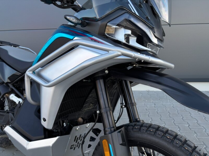 Sada horných padacích rámov chrániacich kapotáž motocykla 800MT-X z ponuky originálneho príslušentva CFMOTO. Pre maximálnu ochranu stroja doporučujeme dokúpiť spodné padacie rámy alebo kryt motora (nedá sa oboje).