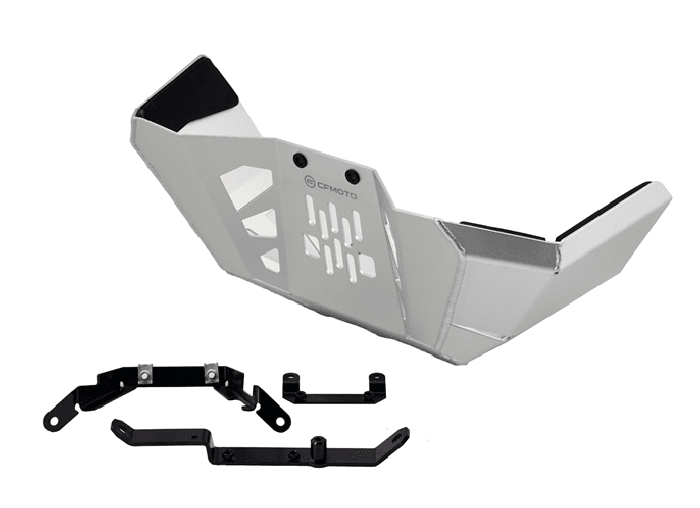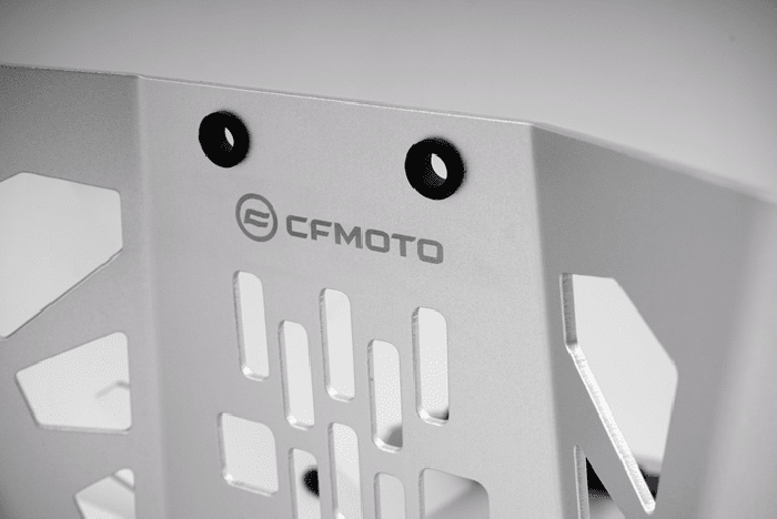 Robustný kryt motora a nádrží motocykla 800MT-X z rady originálneho príslušenstva CFMOTO.
