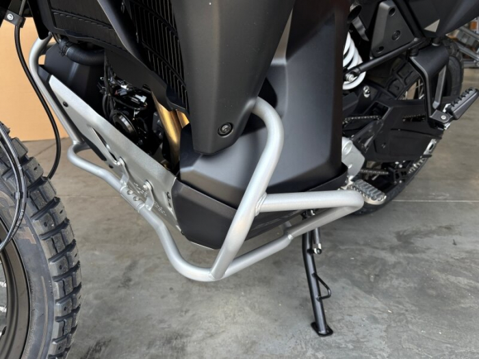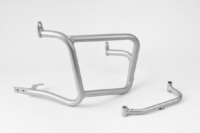 Sada spodných padacích rámov chrániacich motor motocykla 800MT-X z ponuky originálneho príslušentva CFMOTO. Pre maximálnu ochranu stroja doporučujeme dokúpiť horné padacie rámy.