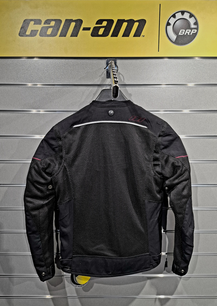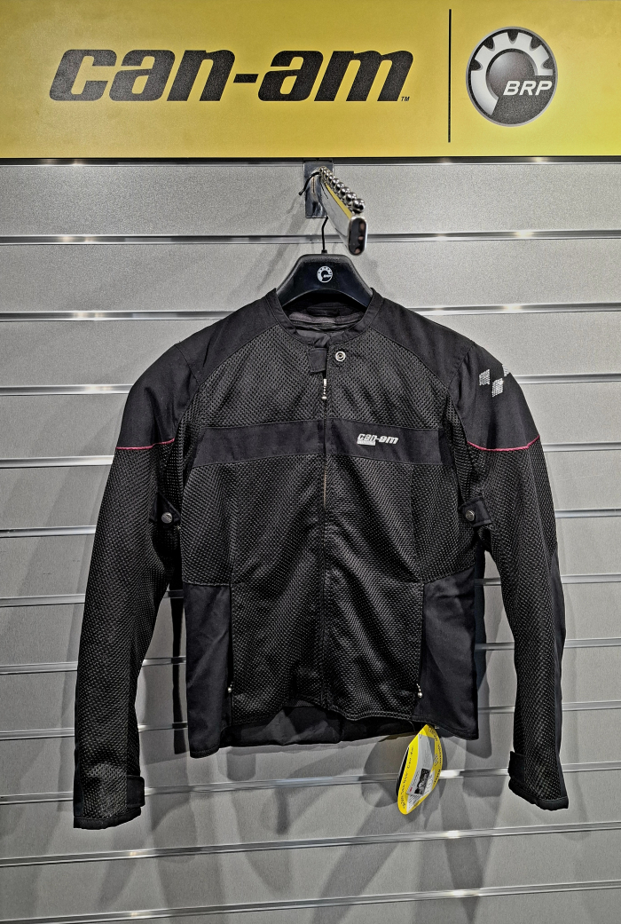 Dámska bunda BRP v čiernej farbe s logom Can-Am SPYDER, dlhý rukáv, sieťovaná, bez kapucne, trblietavé logo SPYDER na ľavom ramene