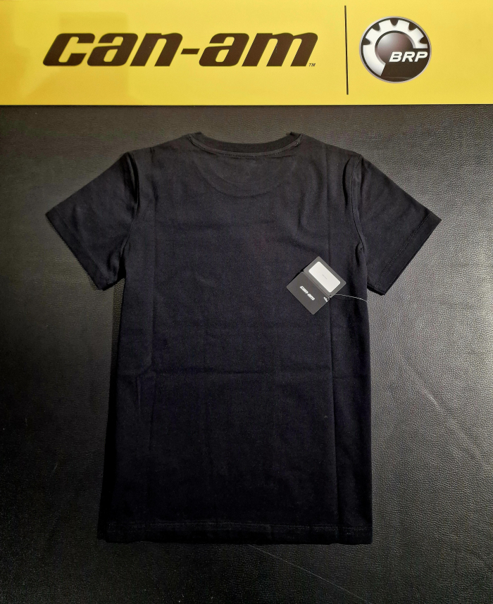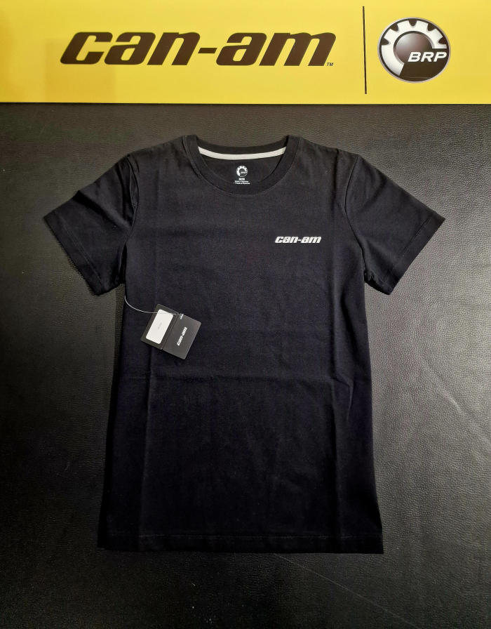 Dámske tričko BRP v čiernej farbe s potlačou a malým bielym nápisom Can-Am