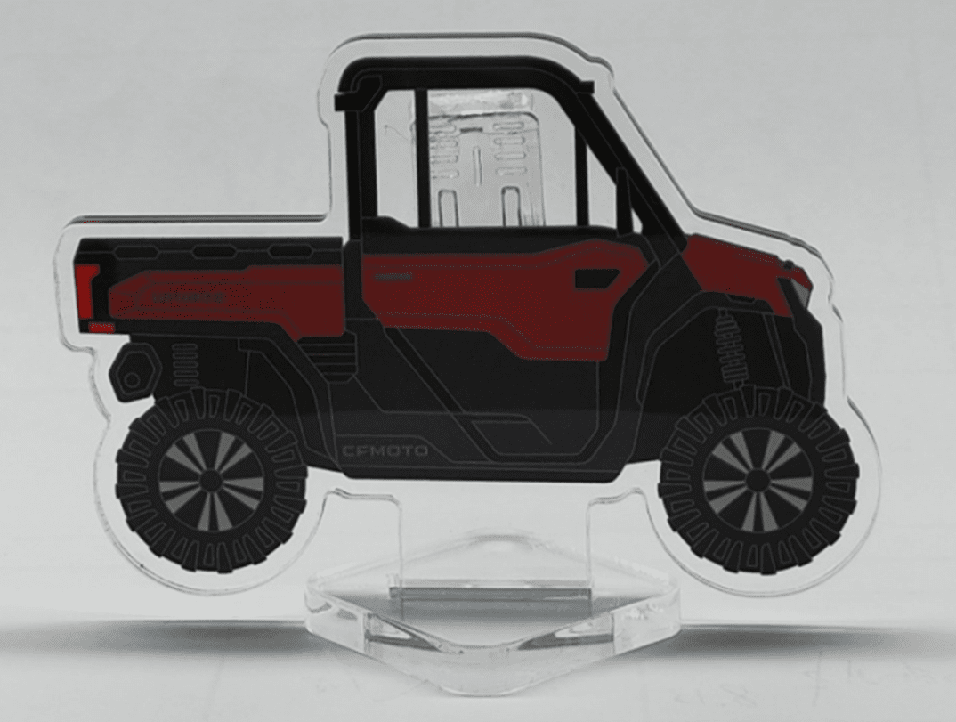 Dekoratívny stojanček s motívom štvorkolky CFMOTO Gladiator U10 PRO Highland. Do klipu na zadnej strane je možné pripnúť fotky alebo poznámkové bločky.