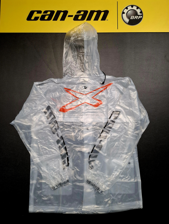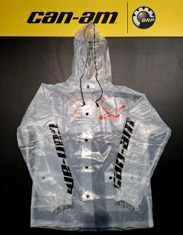 Pláštenka do blata, s čiernym logom Can-Am, účinná ochrana proti blatu, nečistotám a vode, s kapucňou, zapínanie gombíkmi
