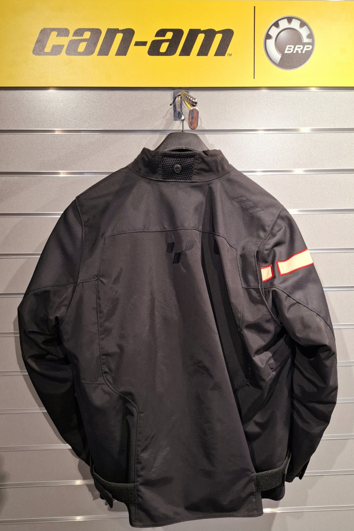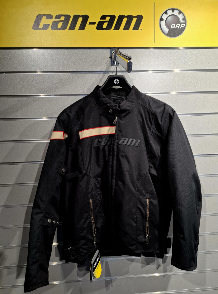 Pánska bunda BRP čiernom farebnom prevedení s bledým pásikom cez pravú stranu, s čiernym logom Can-Am , bez kapucne