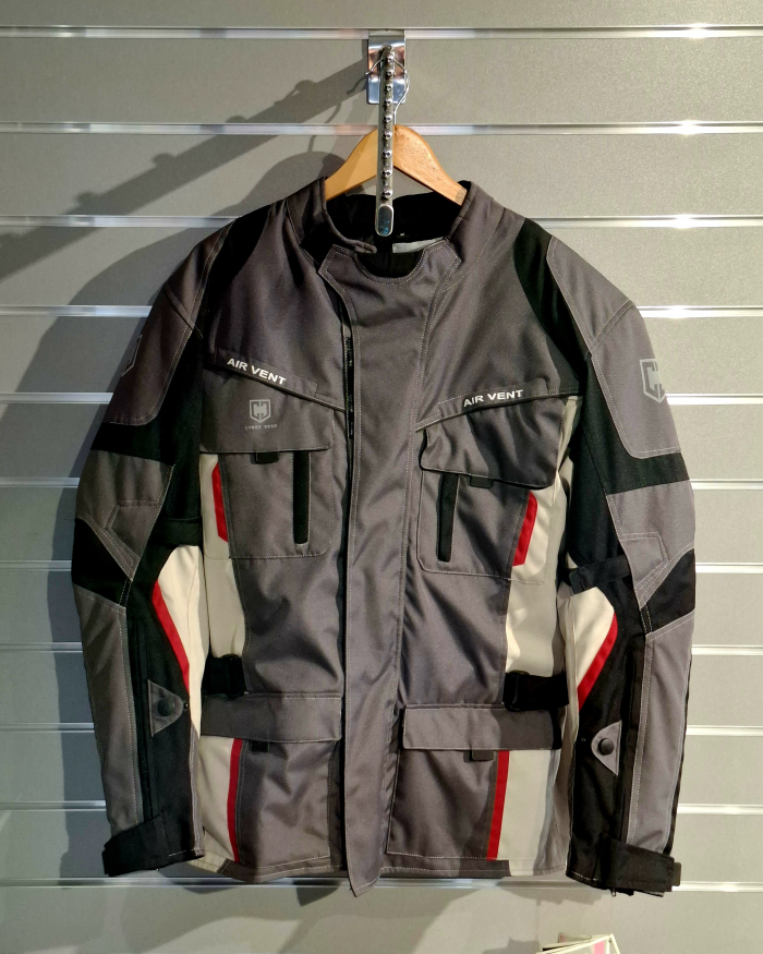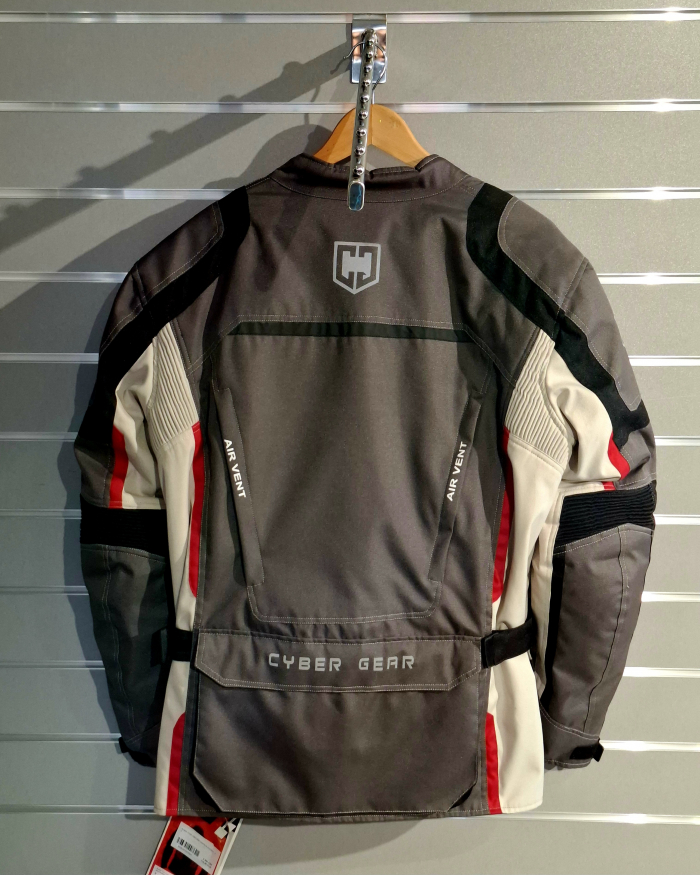 Pánska textilná bunda na motocykel CyberGear, šedá s červenými prvkami