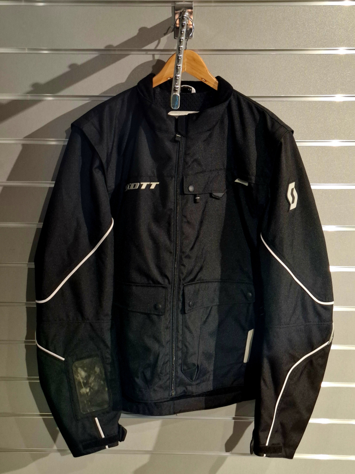 Pánska moto bunda značky Scott, hrubá, biele logo