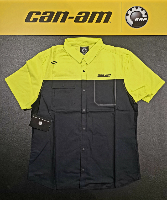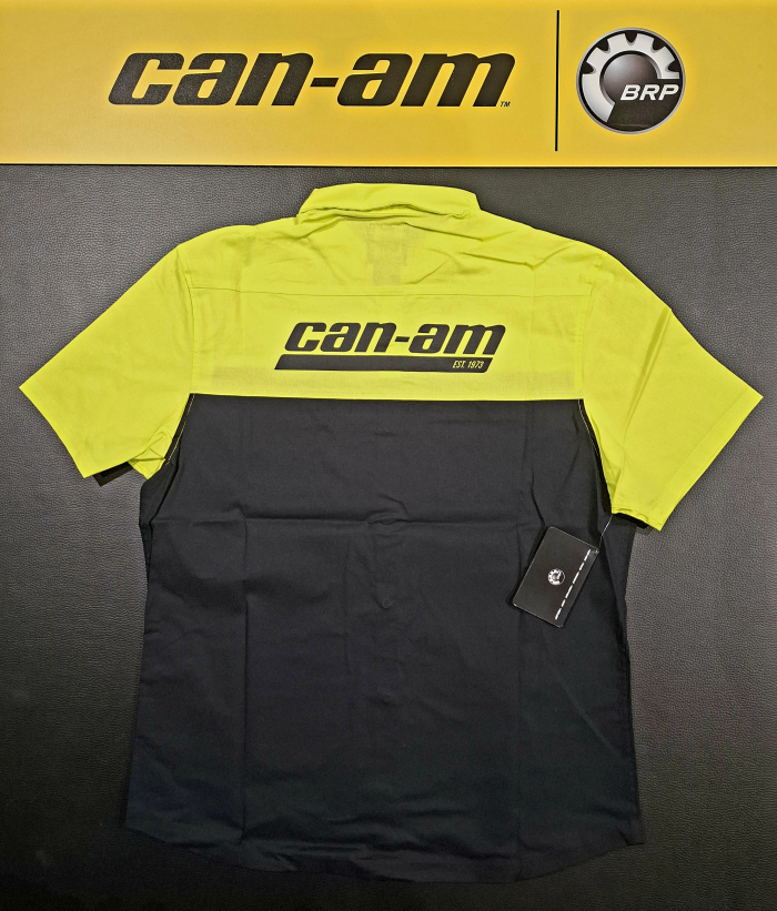 Pánska košeľa BRP čierno-neónová, krátky rukáv, nápis Can-Am na zadnej strane, obojstranná potlač
