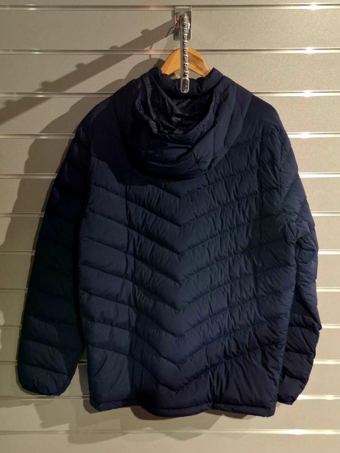 Zoštíhľujúca ultraľahká pánska páperová bunda s kapucňou.