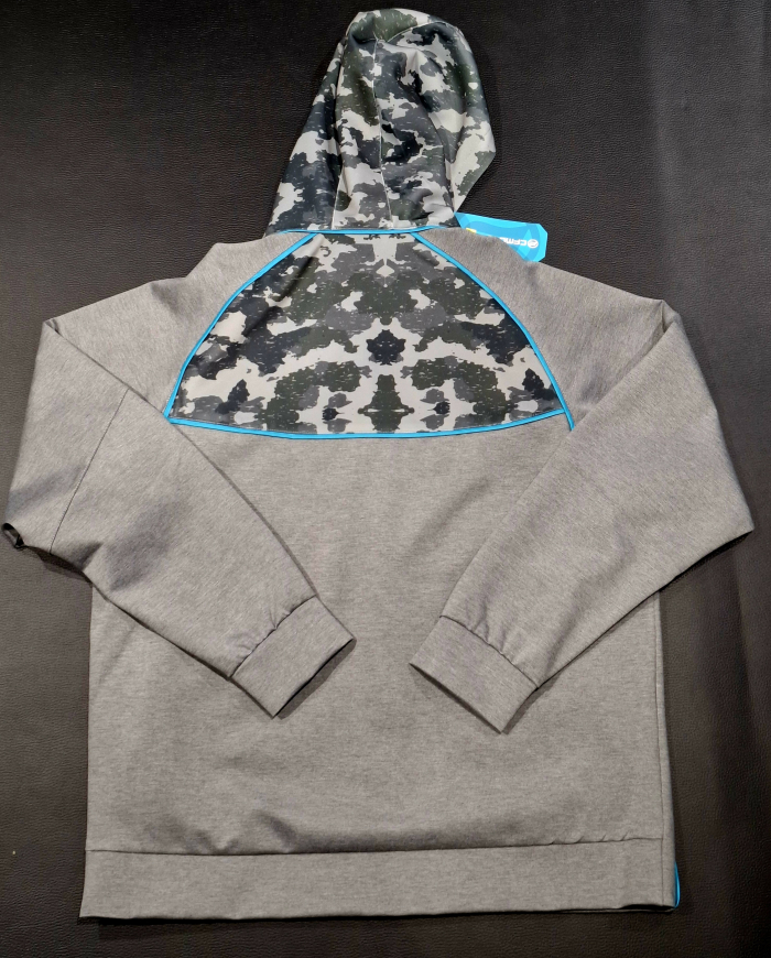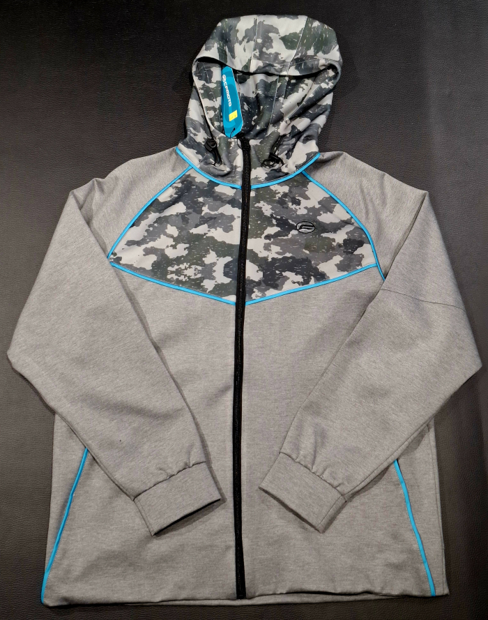 Štýlová moderná mikina na zips s camo prvkami na hrudi, chrbte a kapucni - sťahovací golier a kapucňa - široké a pružné lemy na rukávoch