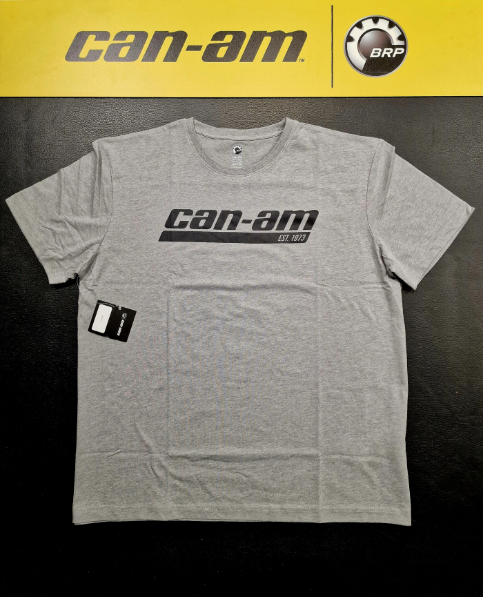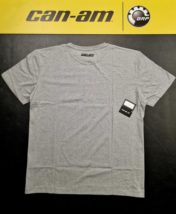 Pánske tričko BRP v sivej farbe s potlačou a logom Can-Am čiernej farby