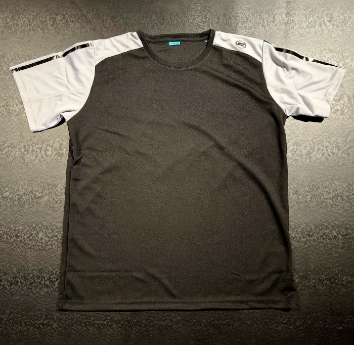 Pánske tričko CFMOTO čiernej farby, sivé rukávy, krátky rukáv, logo CFMOTO