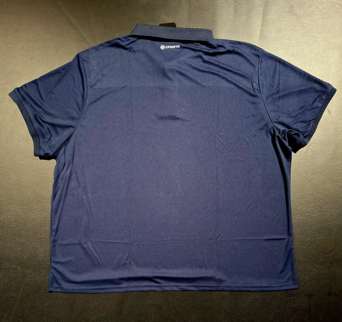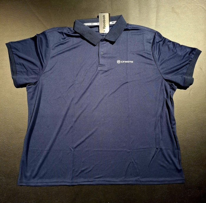 Pánske tričko CFMOTO tmavomodrej farby, s golierom, zapínanie gombíkmi, krátky rukáv