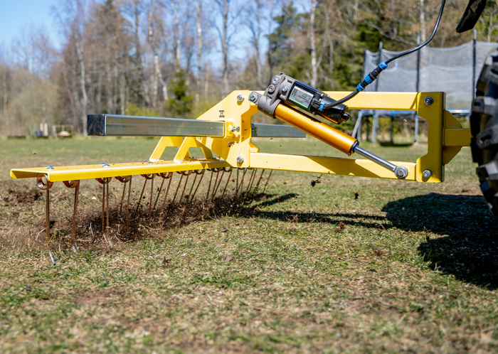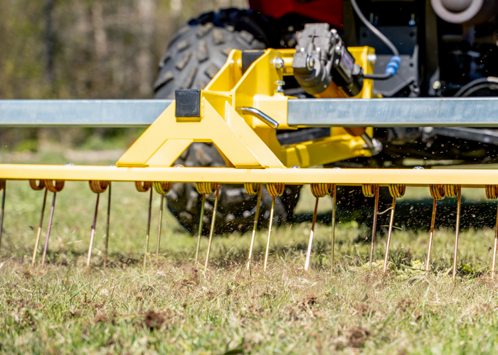 Prevzdušňovač pôdy vytrháva odumretú trávu a uvoľňuje nahromadenú hlinu na výsadbu. Prevzdušňovač pôdy urobí pôdu prístupnejšou pre vzduch, vodu a slnečné svetlo a skutočne pomôže vašej tráve zhustnúť a vyplniť tenké časti.