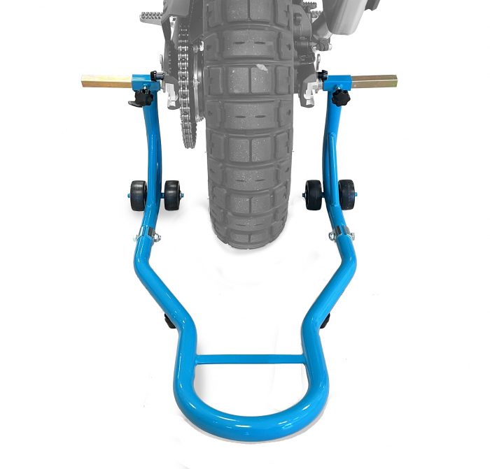 Robustný stojan QuadKit pre bezpečné a pohodlné zdvihnutie zadného kolesa motocykla pri servisných prácach alebo dlhšom uskladnení. Štandardne dodávané s vidličkami, ktoré zdvíhajú motorku za rolne, možno dokúpiť ďalšie príslušenstvo.