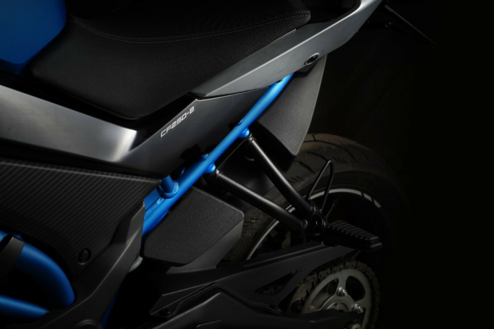 Originálne rozšírenie zadného blatníka pre motocykel CFMOTO 300NK zabraňujúce striekaniu nečistôt od zadného kolesa na nohy jazdca.