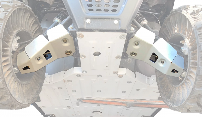 Samostatné hliníkové kryty predných ramien od renomovanej značky Rival pre štvorkolku CFMOTO GLADIATOR UTV625. Inštalačný materiál je súčasťou balenia.