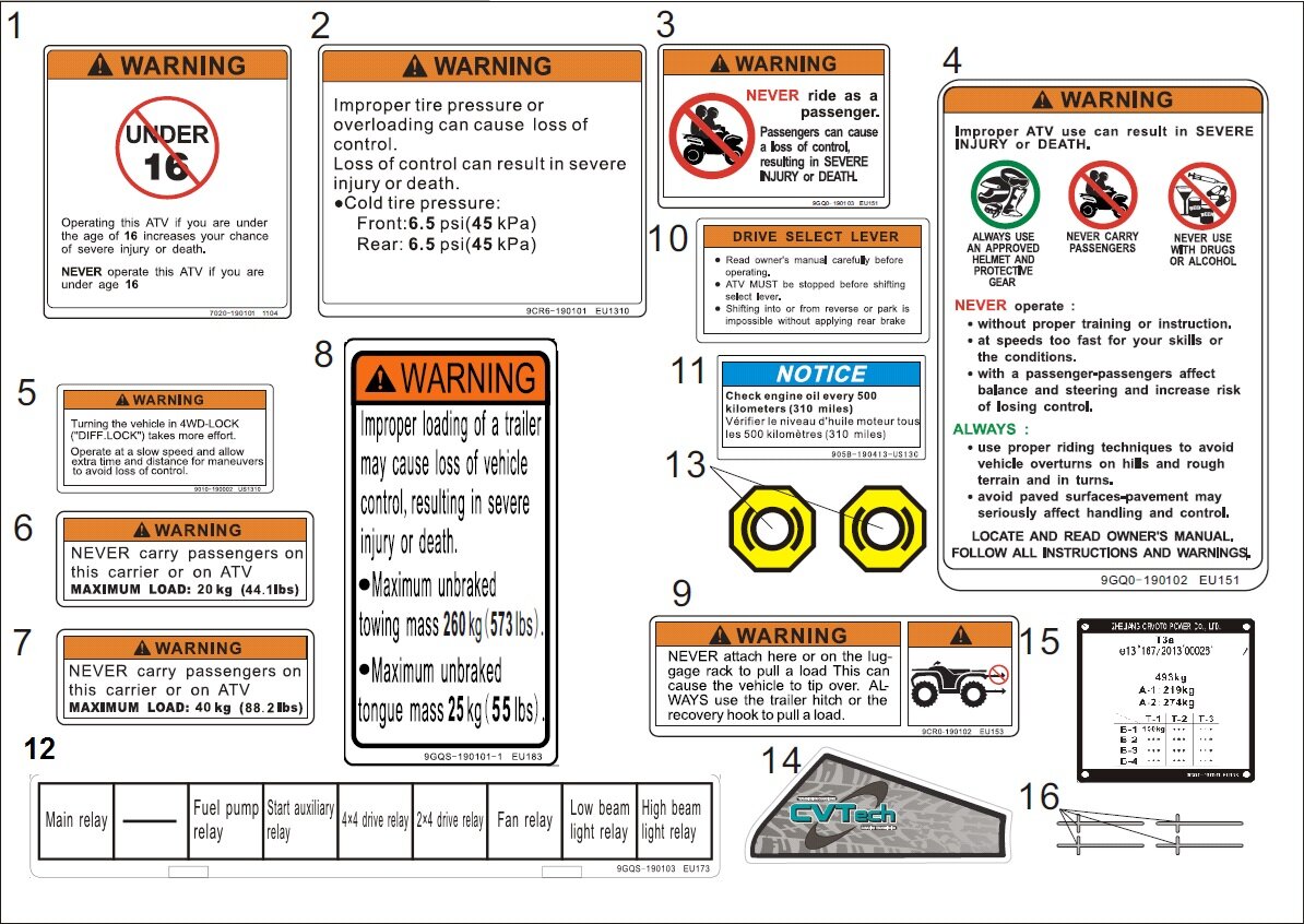 | | | | INSTRUCTION DECALS, TIRE PRESSURE AND LOAD Dostupnosť: Skladom u nás alebo na centrálnom sklade (0-10 dní) Kód: 9CR6-190101 Cena: 1,30 EUR /ks |