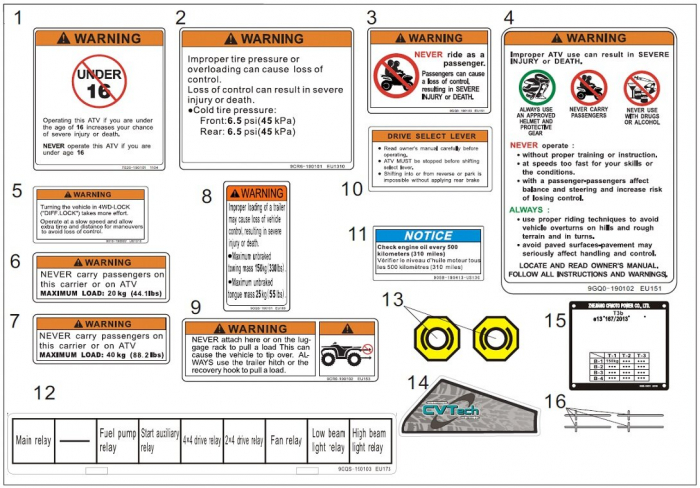 | | | | INSTRUCTION DECALS, TIRE PRESSURE AND LOAD Dostupnosť: Skladom u nás alebo na centrálnom sklade (0-10 dní) Kód: 9CR6-190101 Cena: 1,30 EUR /ks |