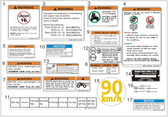 | | | | INSTRUCTION DECAL, TIRE PRESSURE AND LOAD Dostupnosť: Skladom u nás alebo na centrálnom sklade (0-10 dní) Kód: 9GQ0-190101 Cena: 1,30 EUR /ks |