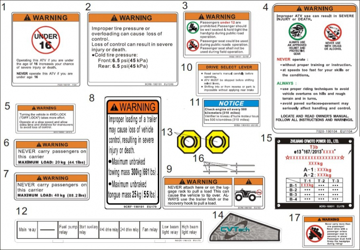 | | | | INSTRUCTION DECALS, TIRE PRESSURE AND LOAD Dostupnosť: Skladom u nás alebo na centrálnom sklade (0-10 dní) Kód: 9CR6-190101 Cena: 1,30 EUR /ks |