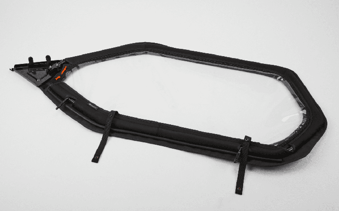 Súprava dvoch horných panelov pre originálne dvere CFMOTO Gladiator Z950 Sport. Vinylové okná sú uchytené zipsom v kovovom ráme a je možné ich v prípade potreby zrolovať.